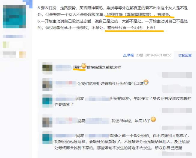 比如有人光凭几句文字描述,就要求别人判断是不是处女。