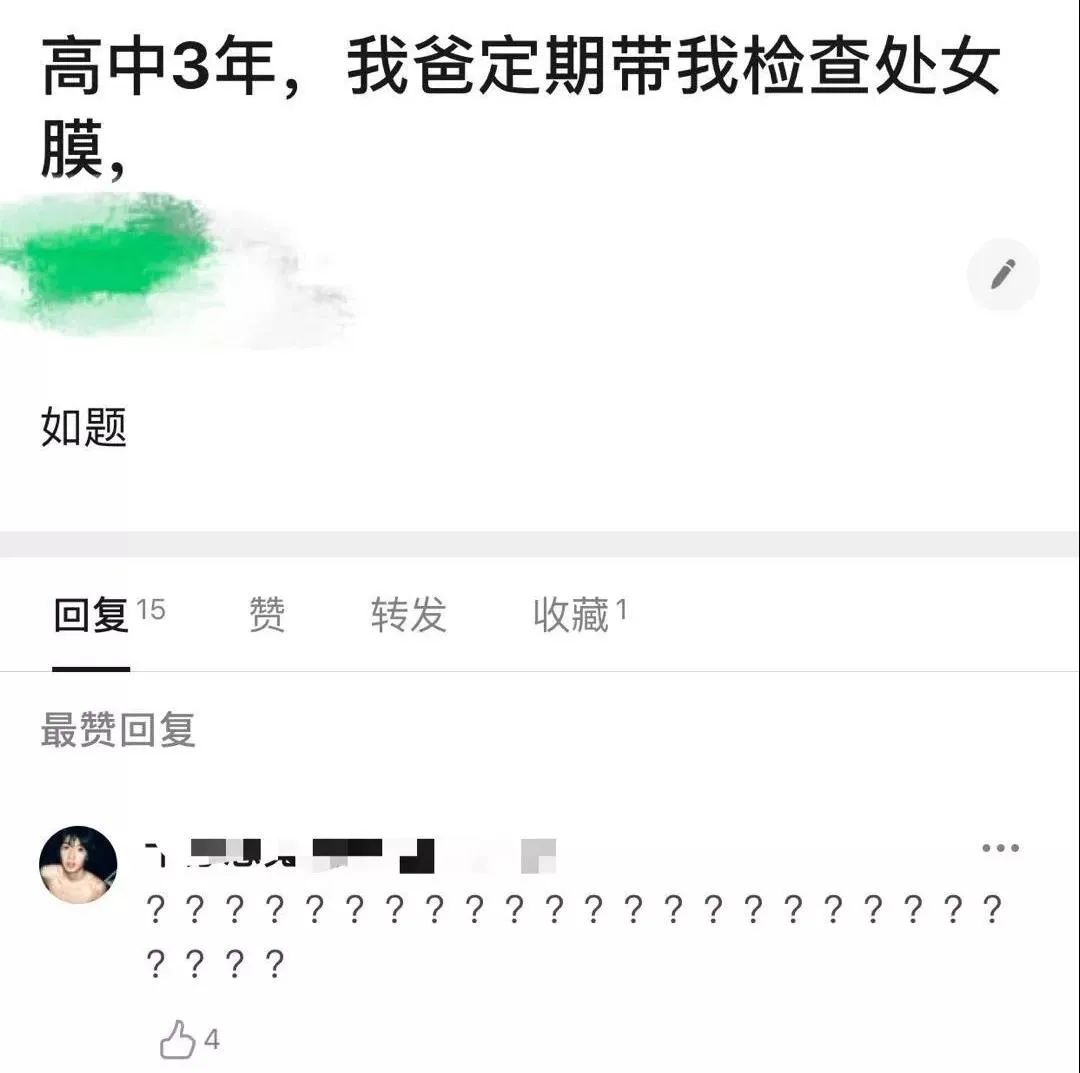 前几天突然翻到一个帖子:“高中3年,我爸定期带我检查处女膜”。