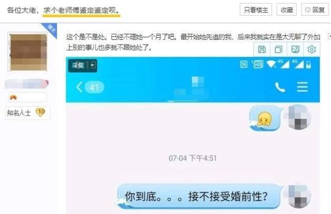 每当有人无法判断伴侣是否为处女的时候,就会在贴吧内发帖求助。
