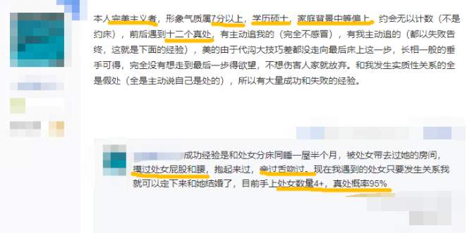 他对自己“鉴定“过4个”真处“十分自豪,言语中充满了”睡过处女“的得意。