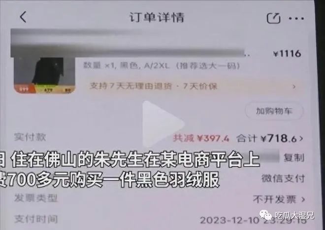 最近广东的天气也经历了前所未有的寒冷。气温下降,冲锋衣已经成为南方人的标配。来自广东佛山的朱先生在强冷风的提示下,迅速在电商平台花费700多元在网上购买了一件降价羽绒服。